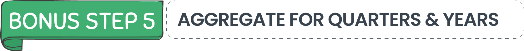 Now that you have your data pulled in by month, it’s time to aggregate things on an annual and quarterly basis to give you greater context into what’s happening.